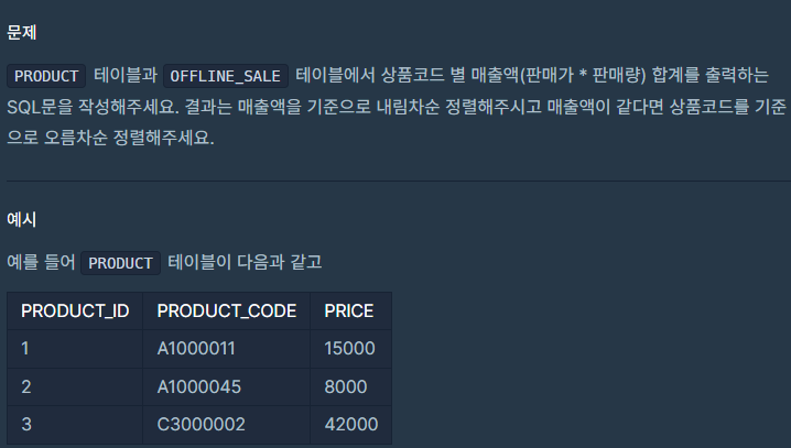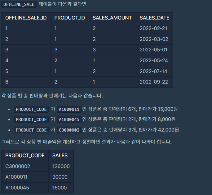 상품 별 오프라인 매출 구하기(정답률81%)