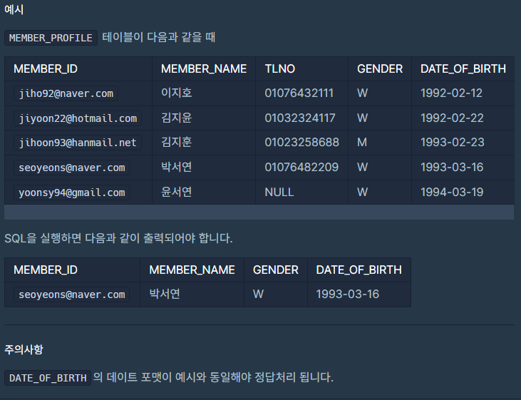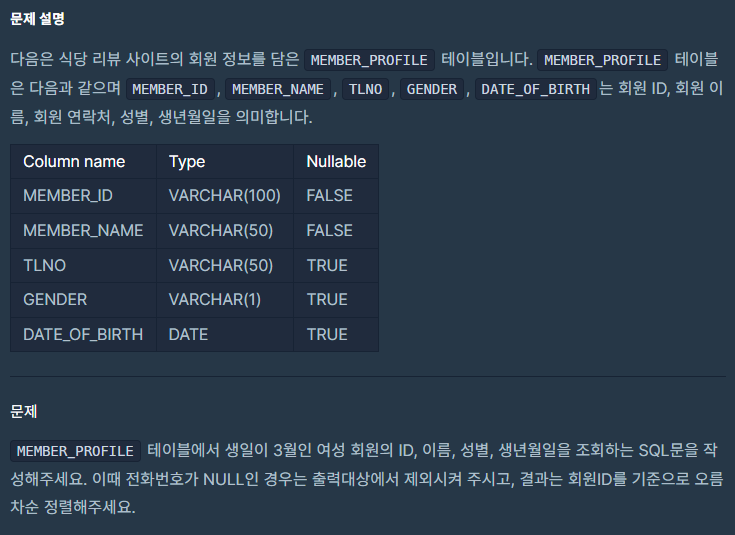 3월에 태어난 여성 회원 목록 출력하기(정답률82%)