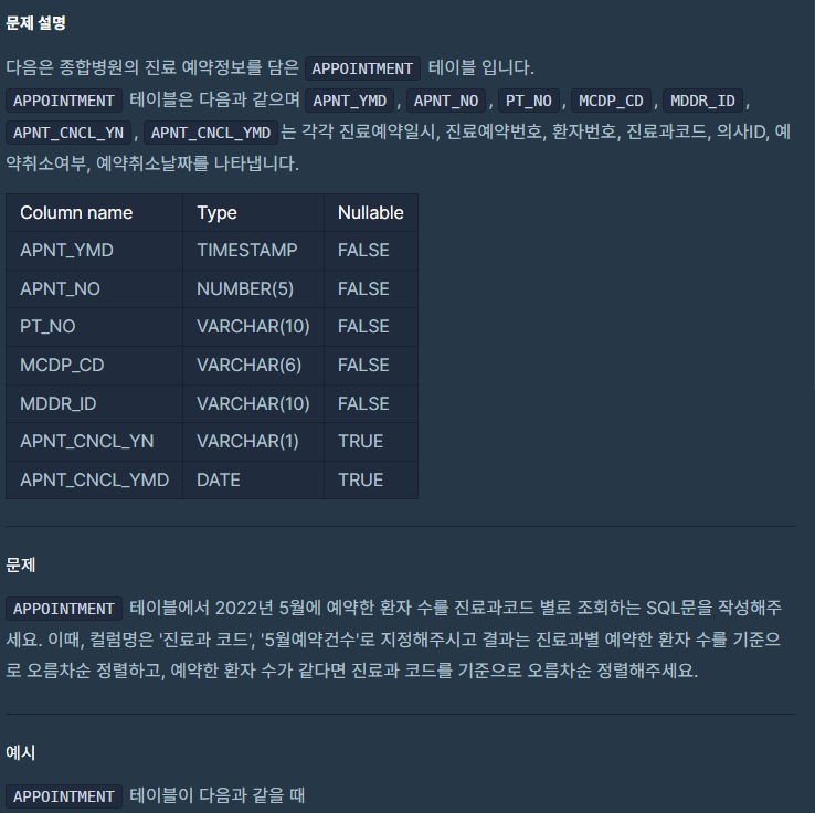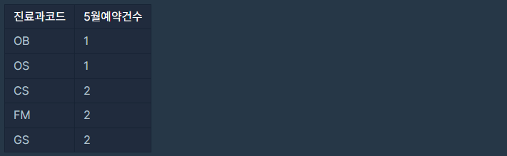 진료과별 총 예약 횟수 출력하기(정답률81%)