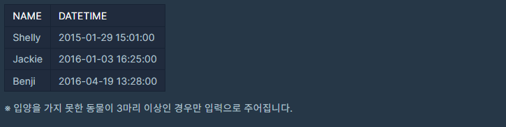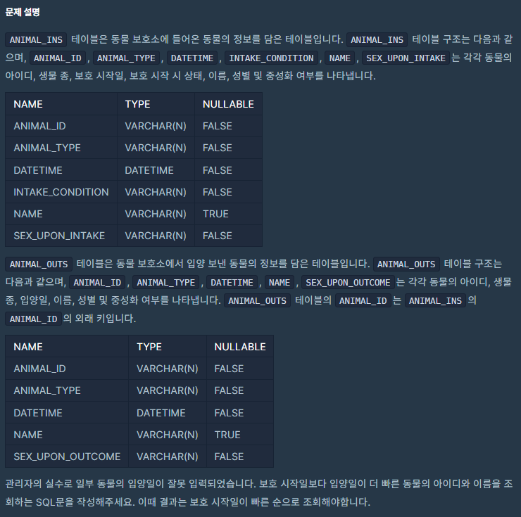 FROM ANIMAL_INS I RIGHT OUTER JOIN ANIMAL_OUTS O