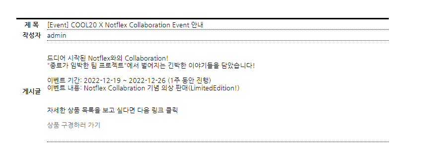 프로젝트명: Cool20 ( 쇼핑몰 )