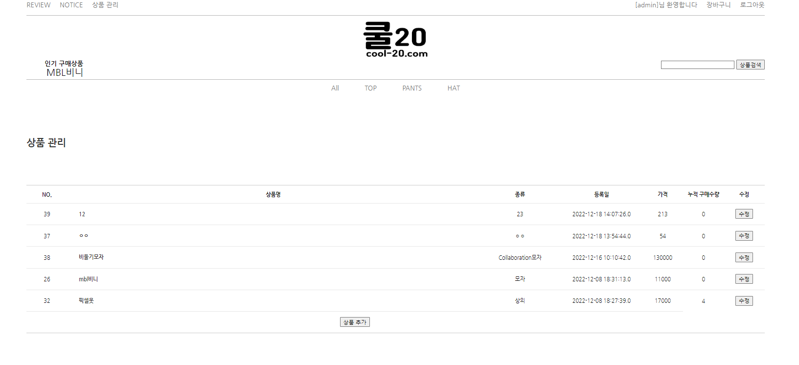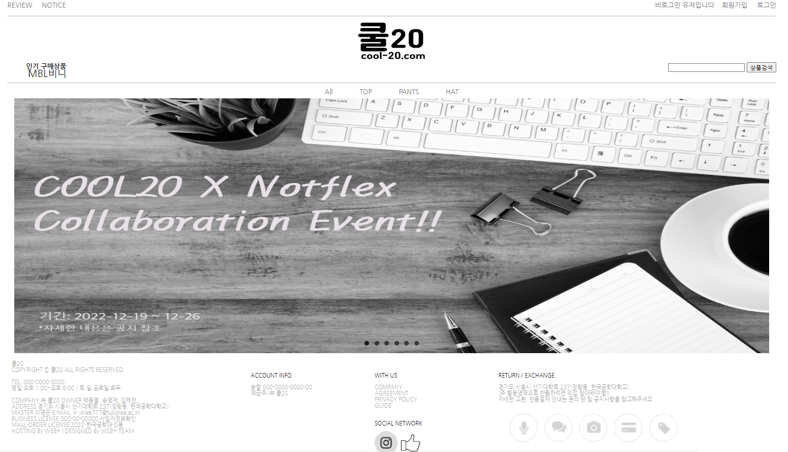 핫텐이라는 쇼핑몰에서 본따 Cool20이라는 쇼핑몰 이름을 정했다