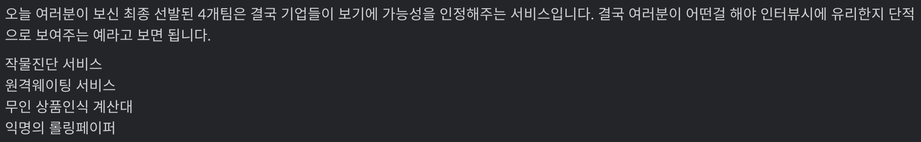 최종 발표자로 준비했던 모든 시간들이 헛되이지 않을 만큼 마지막 발표가 정말 잘 끝났다고 생각합니다