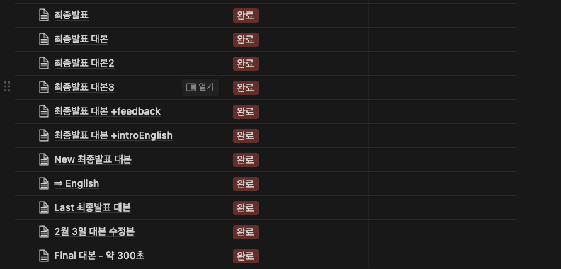 PPT의 수정, 발표 구조 변경, 데모 영상 등의 이슈가 끊임없이 일어나 대대적인 수정을 통해 대본을 수없이 갈아엎었습니다