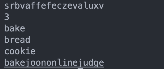 - 문제에서 입력해야 할 암호문과 사전 단어 개수, 사전 단어를 개수대로 입력하는 코드 작성