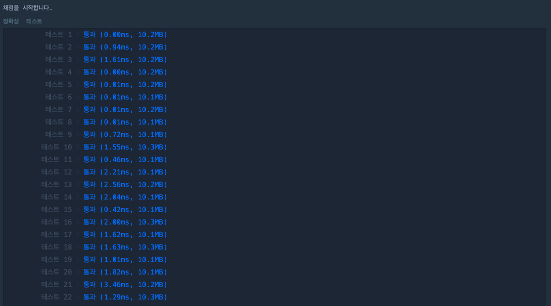 수많은 테스트 케이스에도 끄덕없는 코드가 완성되었다 !
