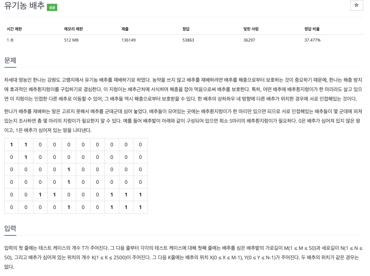 - 배추밭이 굉장히 넓어졌을 때 재귀를 이용할 경우 깊이의 한계에 막히는 것 -> sys를 import해서 이를 방지한다