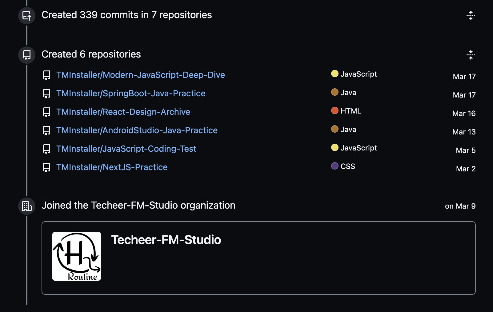 라는 생각을 해서 해야겠다 싶은 건 전부 레포로 만들어 활동하였다