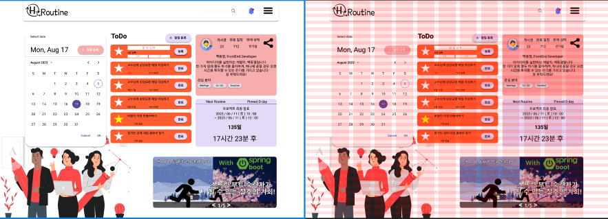 메인 페이지에 접속했을 때 일정을 가장 확실하고도 간단하게 관리할 수 있을 만한 디자인을 구상하였다