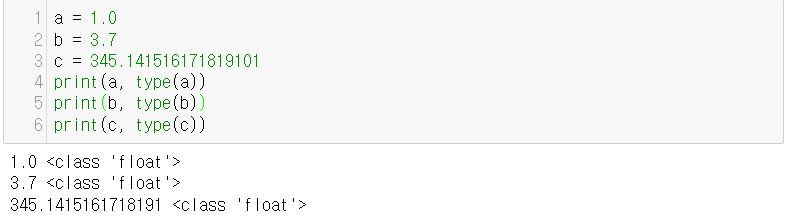 - 실수 표현에서 .0형태 생략 가능(3.0 -> 3)