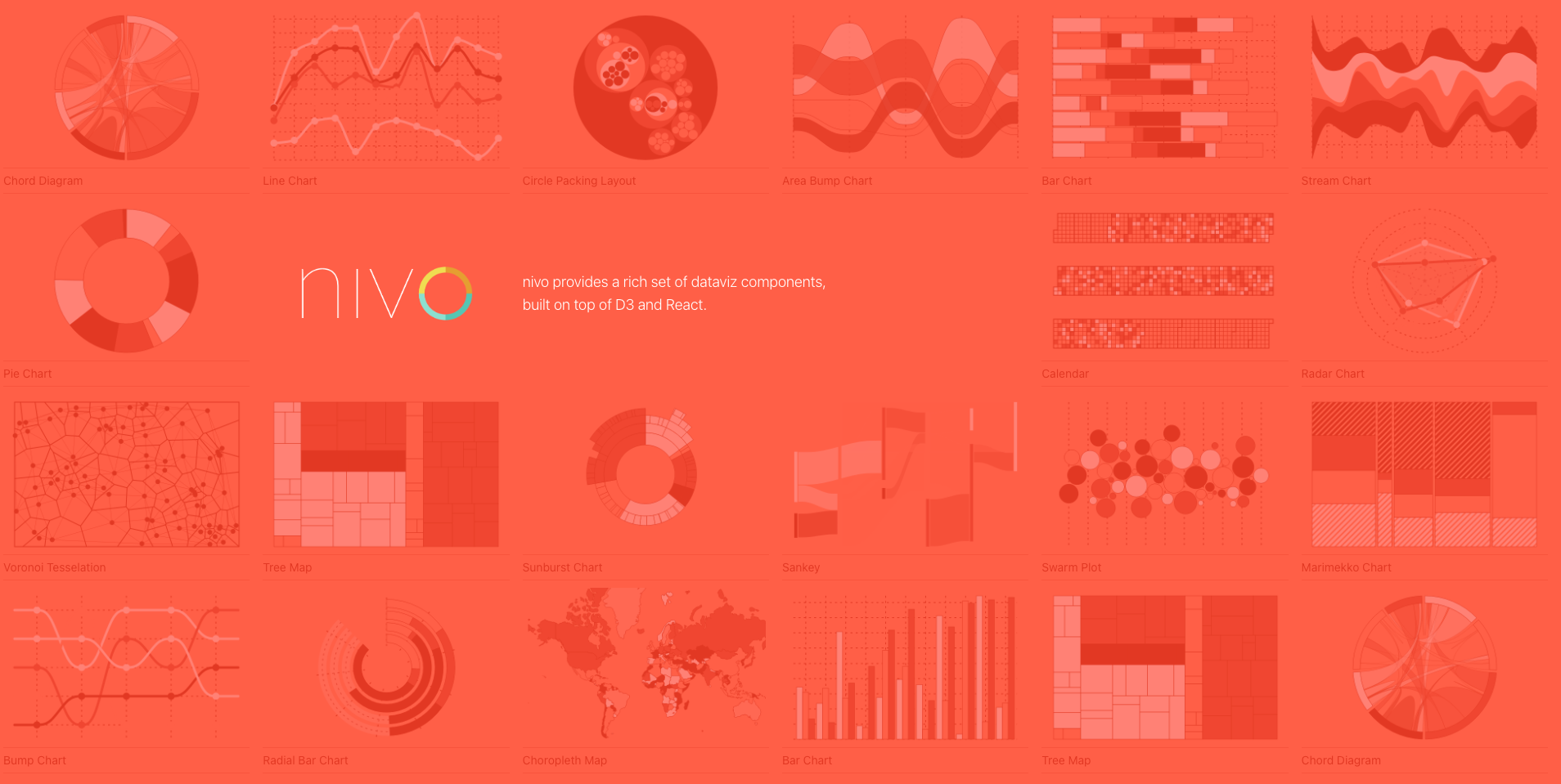 Nivo는 D3 기반의 높은 성능을 자랑하는 React 차트 라이브러리입니다. 다양한 차트 종류와 풍부한 커스터마이징 옵션을 제공하며, 간편한 API를 사용할 수 있습니다. 그러나 D3를 알고 있어야 하는 경우가 있으며, 모바일에는 최적화되어 있지 않습니다.