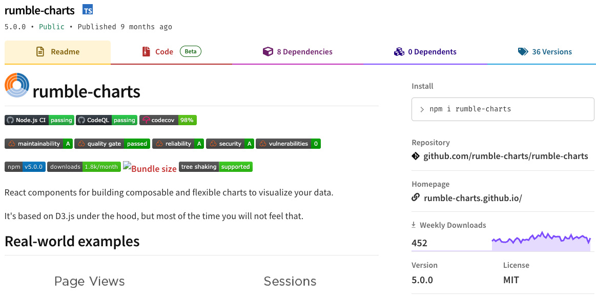 Rumble-charts는 선언적인 방식으로 차트를 구현하는 React 라이브러리입니다. 간단한 문법과 사용자 친화적인 인터페이스를 제공합니다.