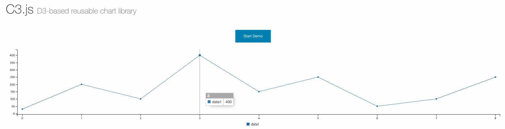 C3.js는 D3 기반의 차트 라이브러리로, 다양한 차트 유형과 기능을 제공합니다. D3의 기능을 더욱 사용하기 쉽게 만들어 줍니다.