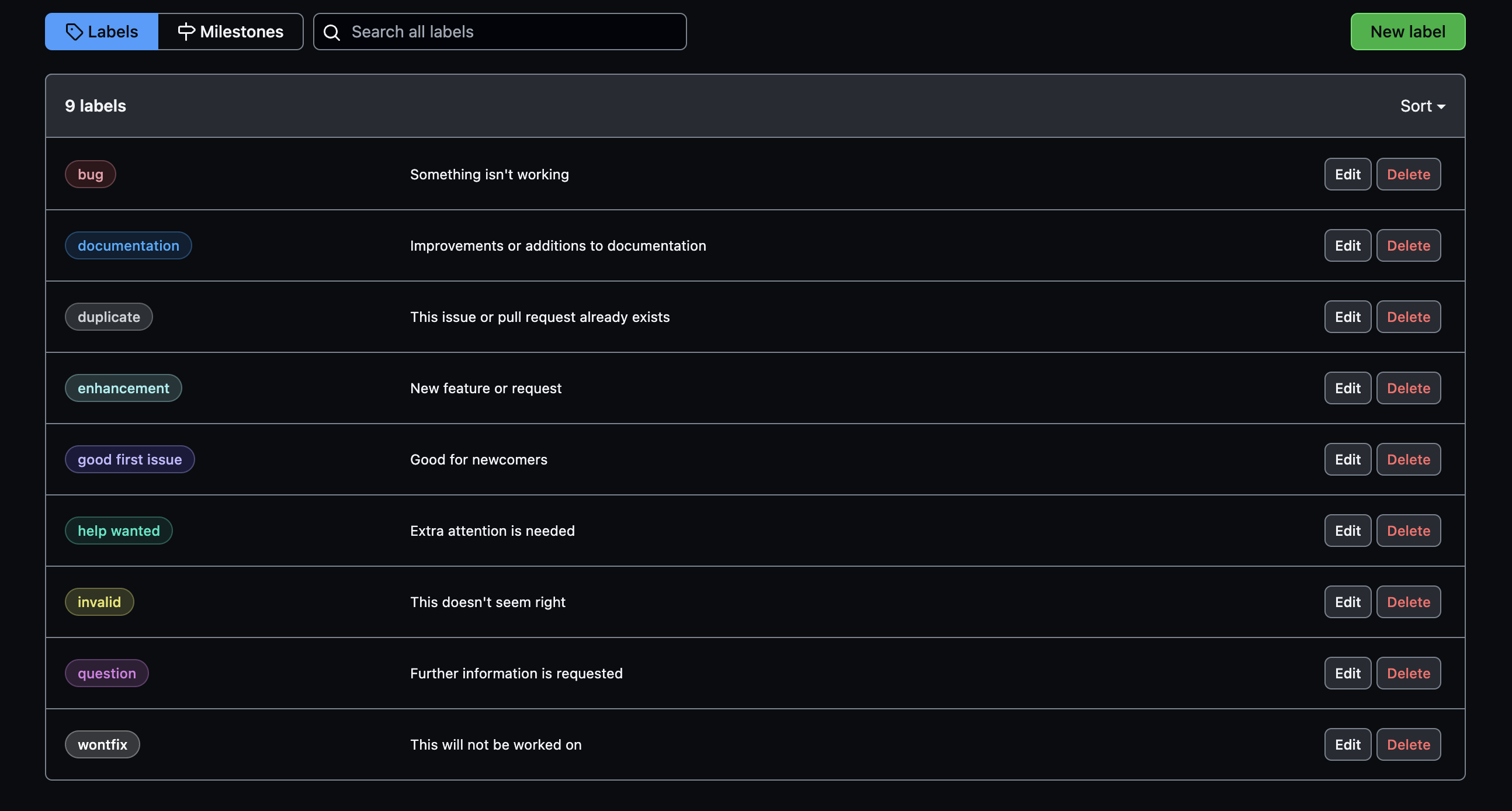- 레이블을 사용하면 이슈와 풀 리퀘스트를 효과적으로 분류할 수 있습니다.