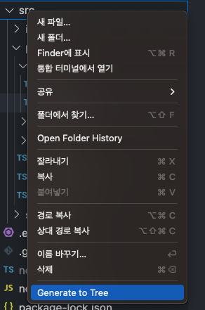 현재 /src 디렉터리의 폴더구조를 뽑아내기 위해 다음과 같은 Extensions를 사용했다