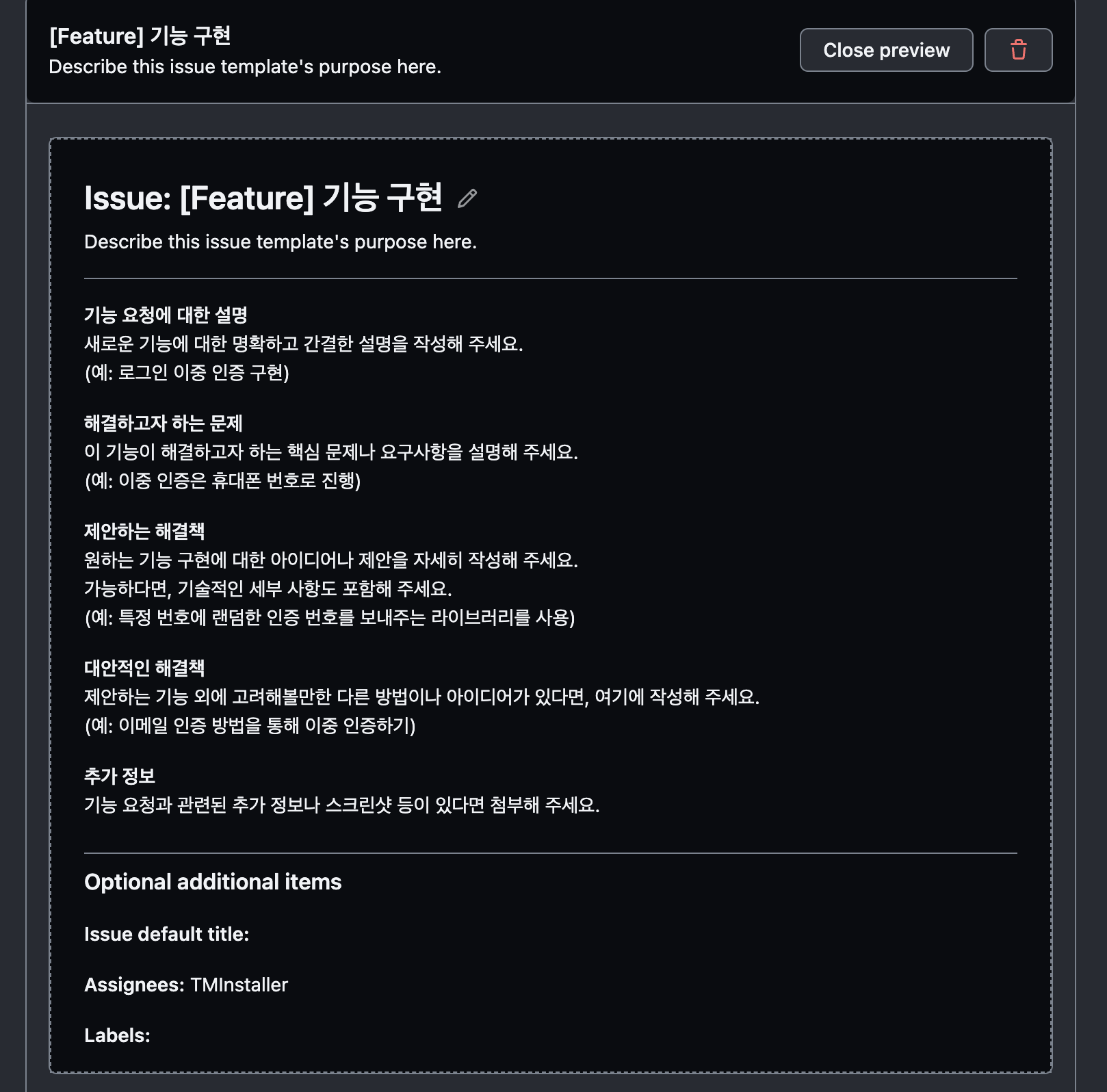 이슈 템플릿 또한 미리 만들어 둔 것을 사용하도록 하겠다