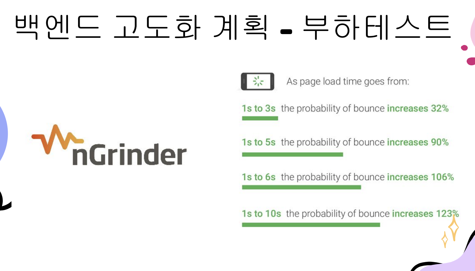 nGrinder를 활용하여 응답시간이 5초 이상이면 90%의 사용자가 이탈하는 문제점을 개선할 계획입니다.