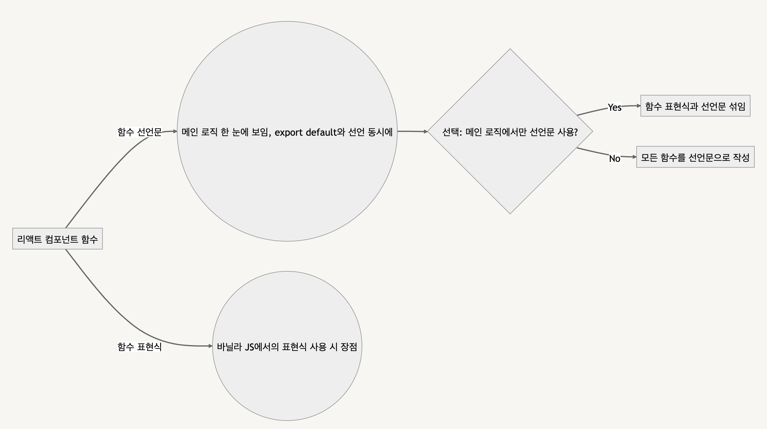 리액트에서 컴포넌트 함수를 작성할 때, 함수 선언문과 함수 표현식 중 어떤 것을 사용해야 할까요?