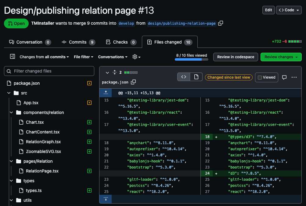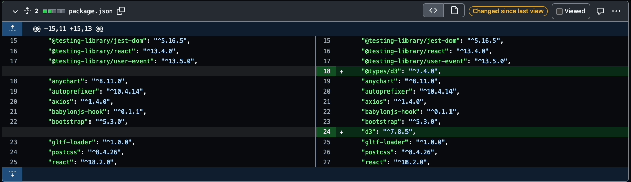 변경된 파일들의 viewed를 눌러 봤다고 체크할 수도 있습니다.