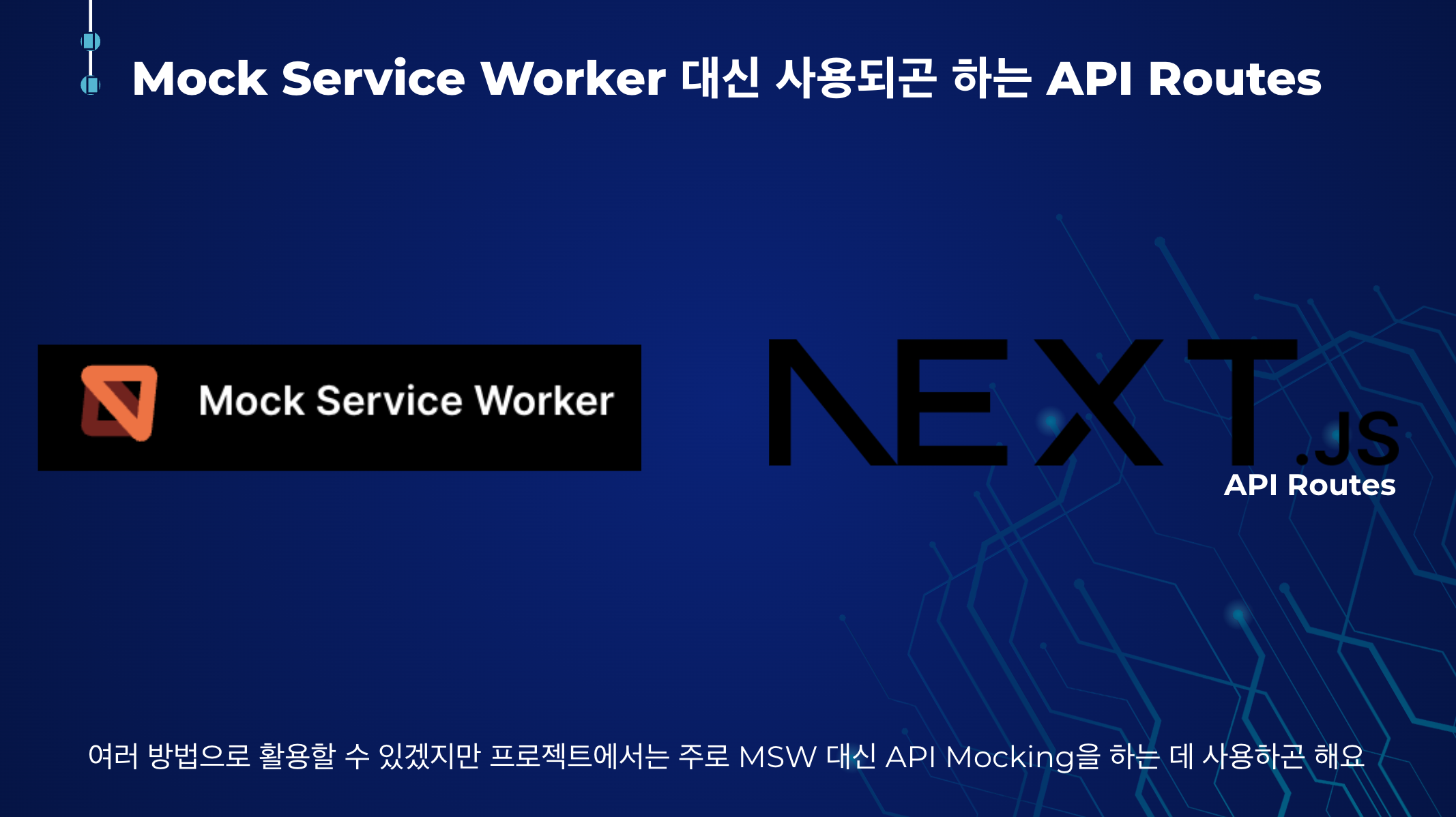 기존에 많은 분들이 React를 통해 프로젝트를 만들어 볼 때 (MSW)Mock Service Worker를 통해 API를 Mocking하고 백엔드와 병렬적으로 개발을 해왔었는데요, Next.js 프로젝트에서는 백엔드와 따로 작업을 하므로 이 API Routes를 활용하여 Mocking해서 개발하기도 합니다.