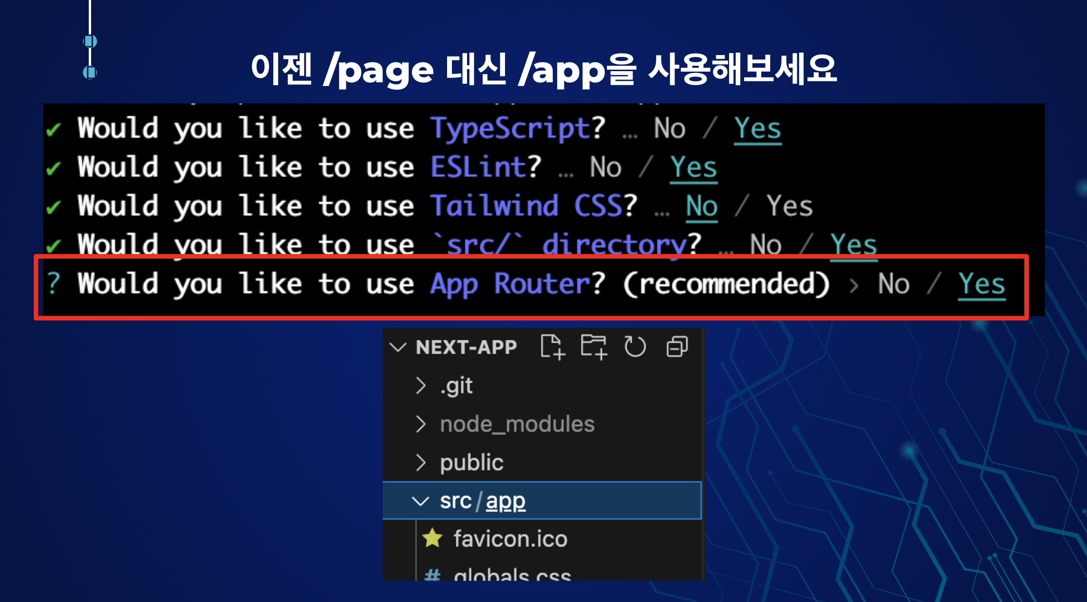 13버전 이후에는 App Router로 변경되면서 `/app` directory 내부에 `/page`와는 다른 프레임워크 기능들을 이용할 수 있게 됩니다.