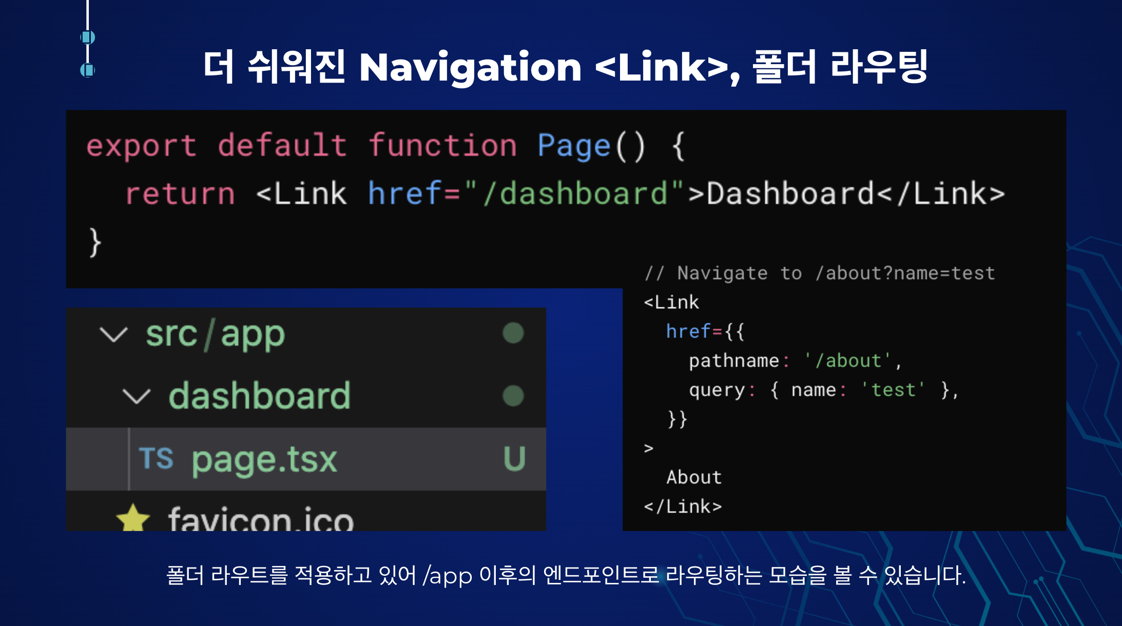 Next.js 에서 개선되고 발전 된 라우팅 방식과 네비게이션 방식입니다.