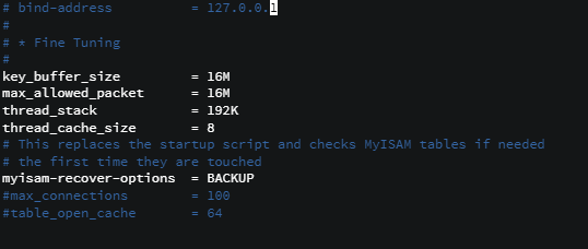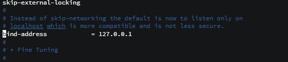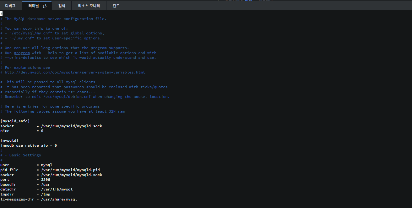 vi editor을 이용하여 mysqld.cnf(설정파일) 수정