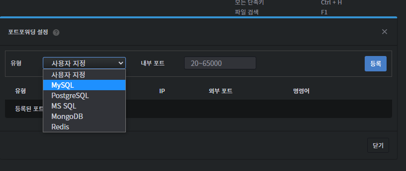 이제 메뉴바에서 컨테이너 >> 포트포워딩 설정 클릭