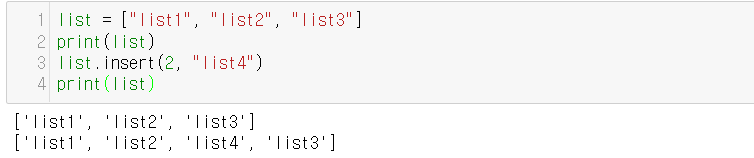 - insert(a, b) - a위치에 b 데이터 추가