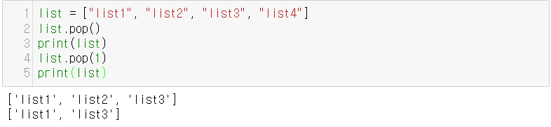 - pop(a) (type(a) = int)의 경우에는 a위치의 데이터를 빼낸다