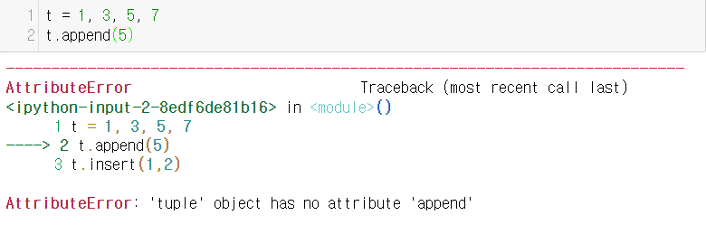 + 튜플은 내부 수정이 불가능하기에 append, insert, pop메소드는 다루지 않겠다