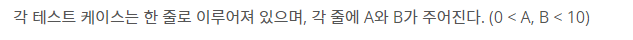 두 정수 A와 B를 입력받은 다음, A+B를 출력하는 문제이다.