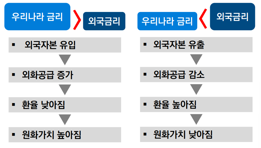 - 투자자본 등이 금리가 낮은 나라에서 높은 나라로 이동하게 된다
