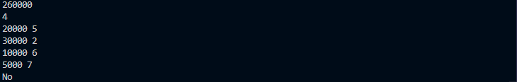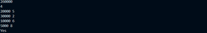구매 물건의 가격의 총합이 X와 같으면 Yes, 아니면 No 출력