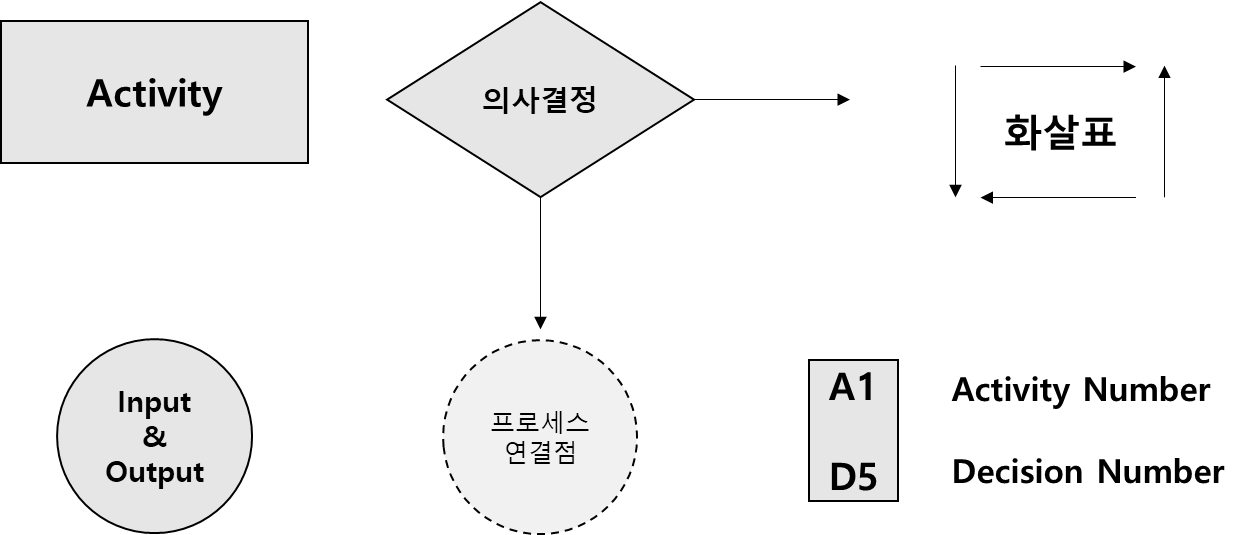 - 프로세스의 흐름, 의사결정 포인트, 수행되는 활동을 나타내기 위한 기호를 사용한다