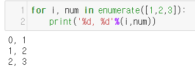 - 인덱스와 리스트의 값을 한쌍에 반환할 때 사용