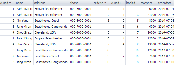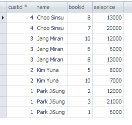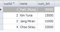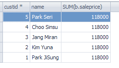 위에 썼던 구조를 이용하여 custid를 정렬하는 문장까지 쓰면 깔끔하게 정렬된 결과가 나온다