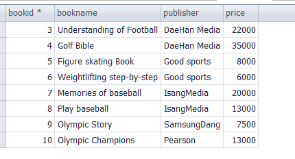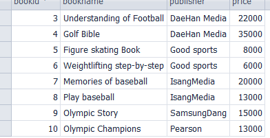 2.UPDATE.4 bookid = 9인 도서의 가격을 수입도서인 22번 도서 가격으로 변경