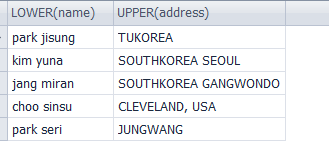 6.LOWER+UPPER.1 name을 소문자로, address를 대문자로