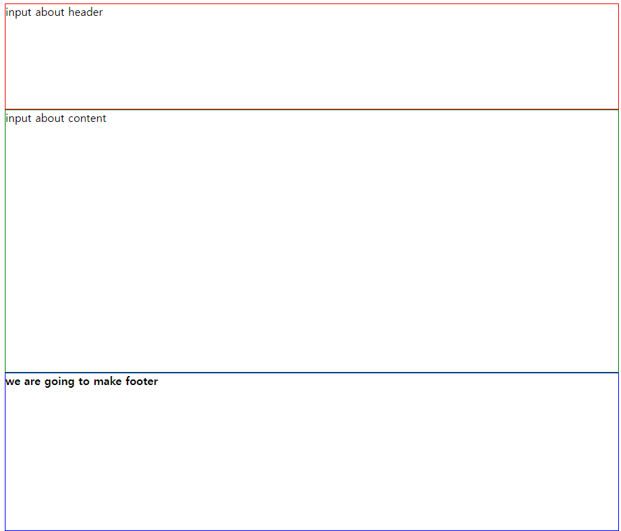 <div> tag를 통해 header, content, footer로 나누어 구현하겠다