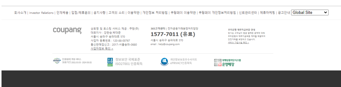쿠팡페이 개인정보처리방침 | 신뢰관리센터 | 제휴마케팅 | 광고안내