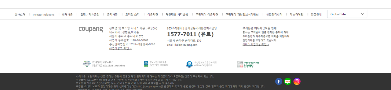 고객의 소리 | 이용약관 | 개인정보 처리방침 | 쿠팡페이 이용약관 |